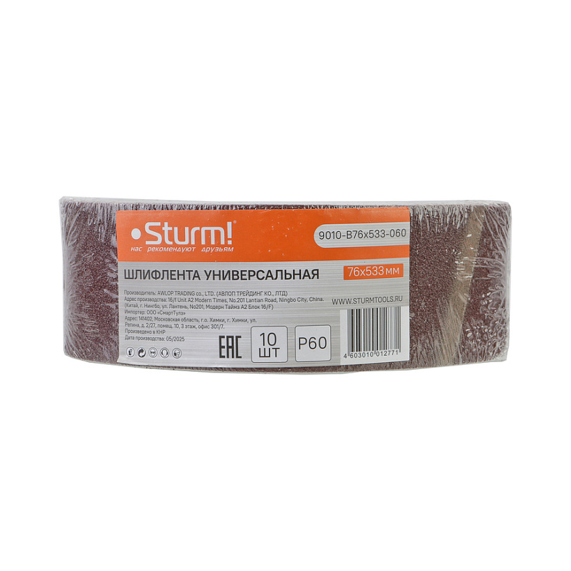 Шлифлента, 76x533мм, Р60, 10 шт, Sturm!
