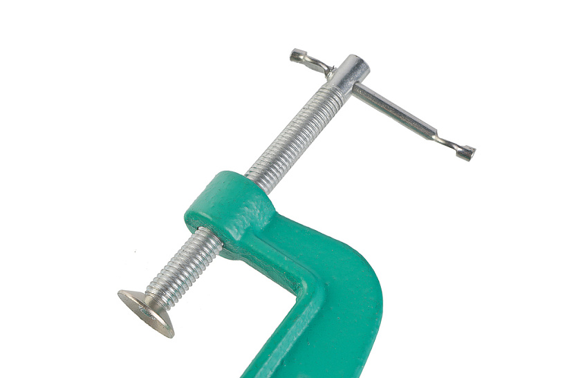 Оцинкованный винт защищен от коррозии, что продлевает срок службы изделия. Т-образная рукоятка обеспечивают быструю и надежную фиксацию деталей. Литая чугунная рама обеспечивает жесткость и прочность инструмента в процессе работы.
