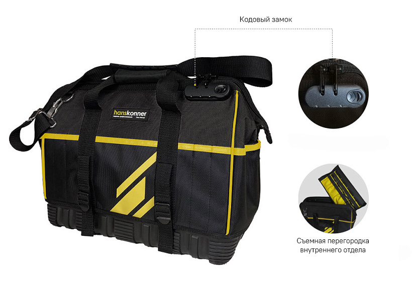 Сумка для инструментов, код. замок, 38 карманов, пластиковое дно, Hanskonner