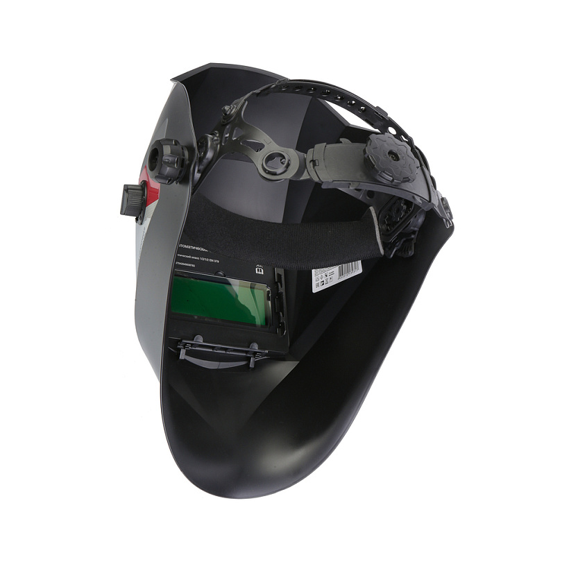 Сварочная маска Энергомаш МС-91А3РФ. Простая в использовании модель для индивидуальной защиты как от вредного инфракрасного и ультрафиолетового излучения, так и от брызг расплавленного металла.
