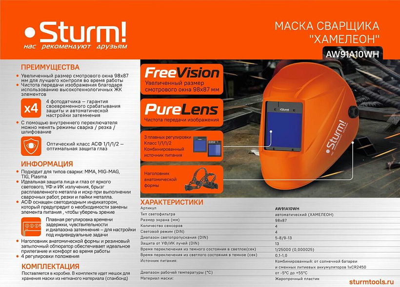 Маска сварщика Sturm! AW91A10WH.