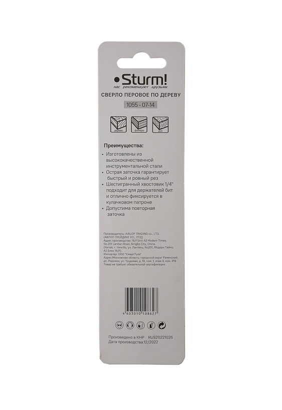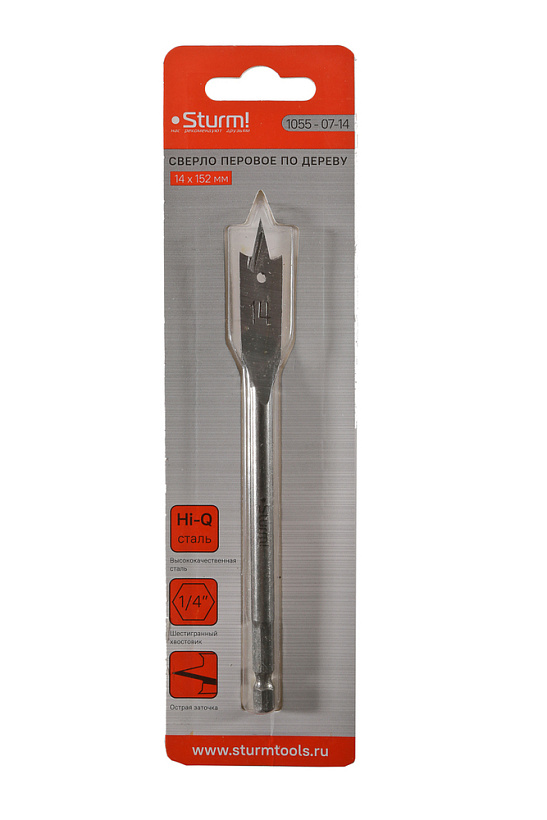 Сверло перовое по дереву, 14мм, шестигранный хвостовик, Sturm!