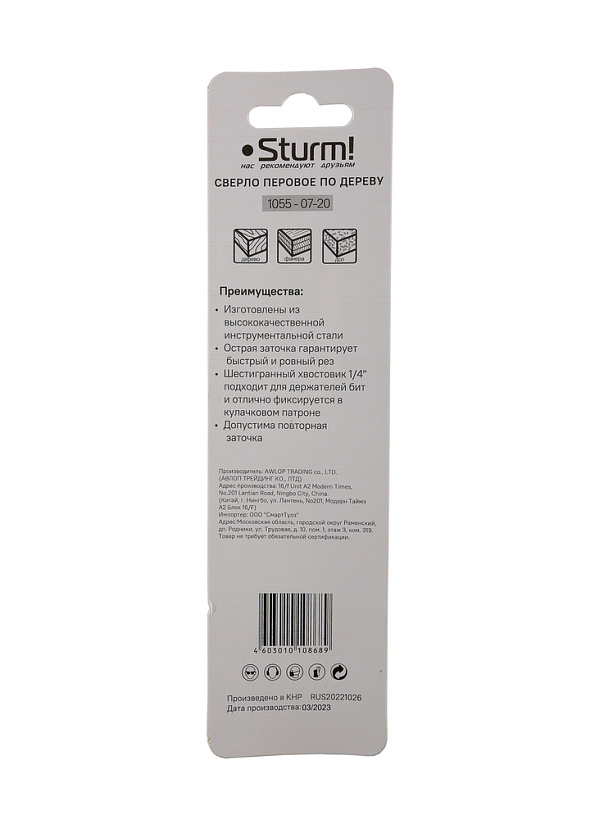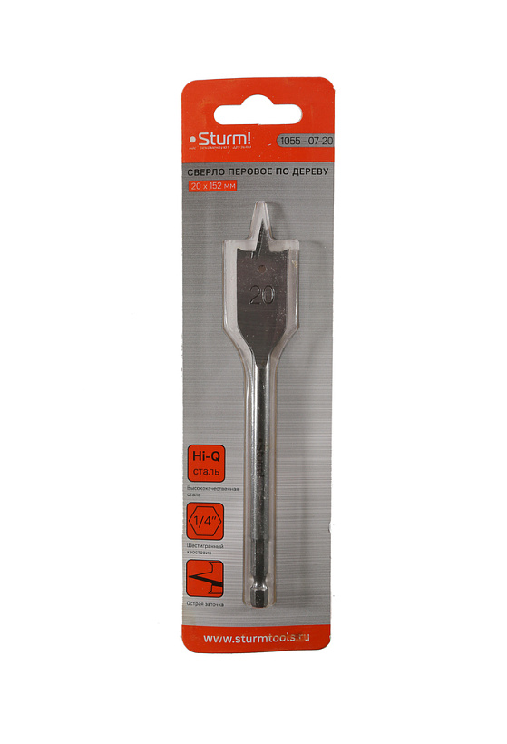 Сверло перовое по дереву, 20мм, шестигранный хвостовик, Sturm!