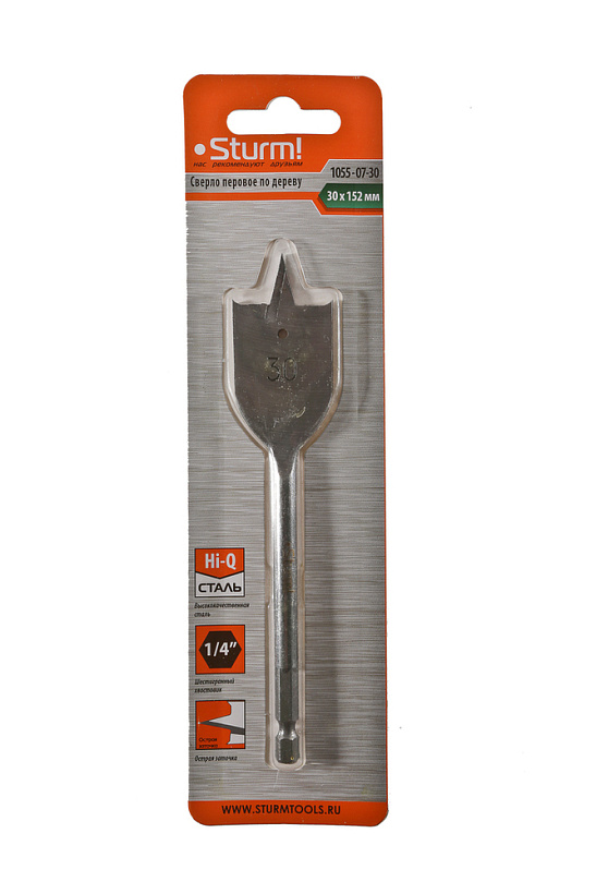 Сверло перовое по дереву, 30мм, шестигранный хвостовик, Sturm!