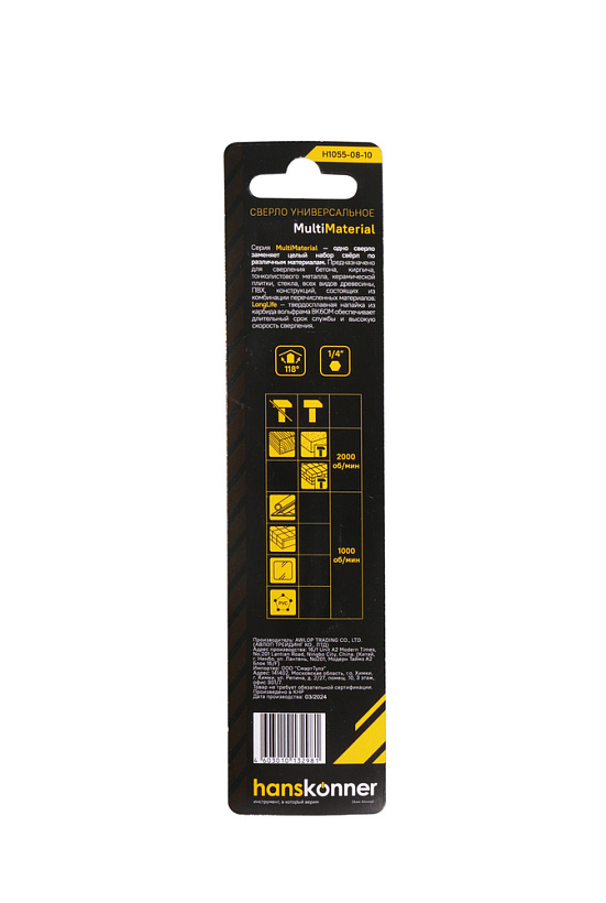 Сверло универсальное 10мм, Hanskonner H1055-08-10