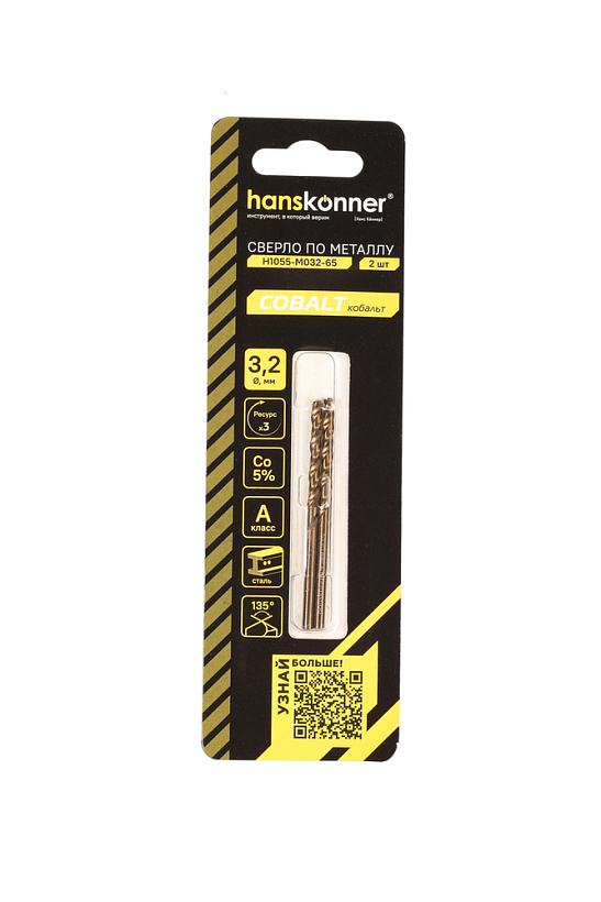 Сверло по металлу COBALT 3,2х65мм 2 шт. Hanskonner