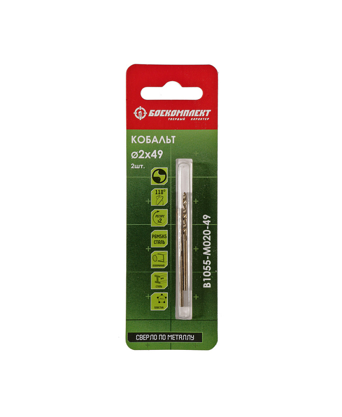 Сверло по металлу Кобальт 2,0х49мм 2шт БОЕКОМПЛЕКТ