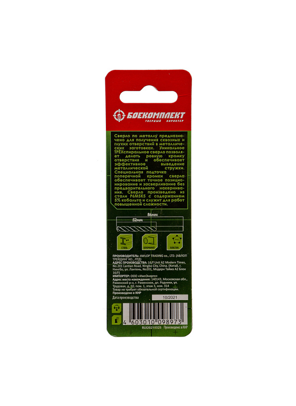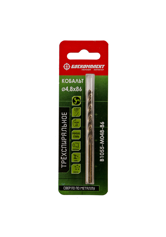 Сверло по металлу ТРЁХСПИРАЛЬНОЕ Кобальт 4,8х86мм БОЕКОМПЛЕКТ
