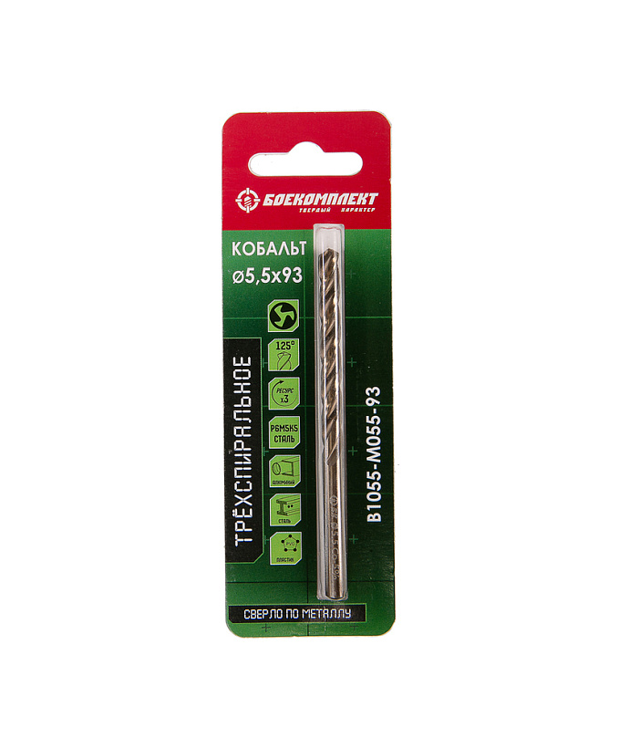Сверло по металлу ТРЁХСПИРАЛЬНОЕ Кобальт 5,5х93мм БОЕКОМПЛЕКТ