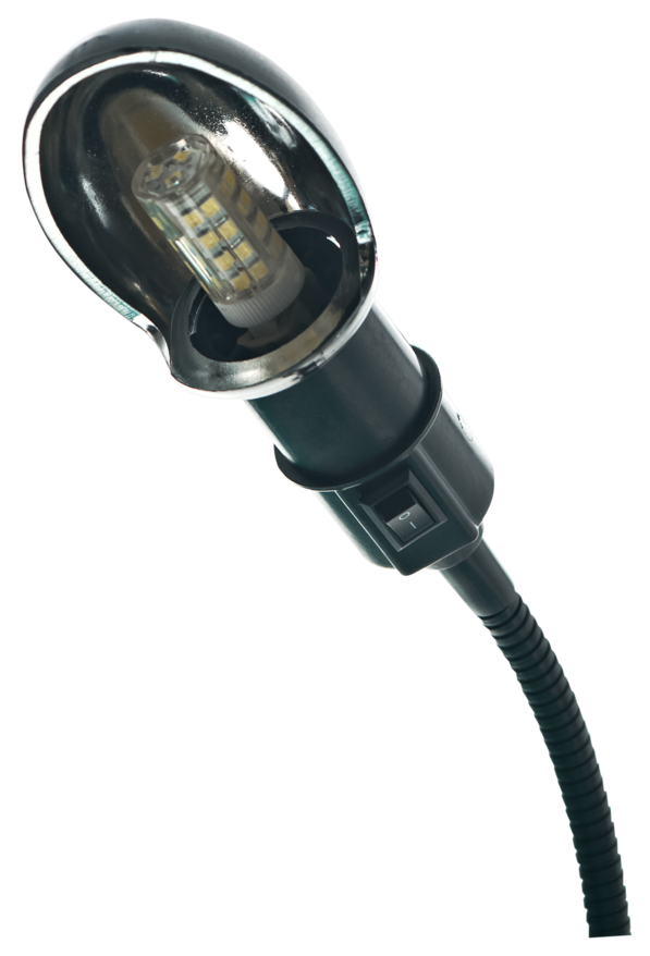 - Гибкая металлическая стойка позволяет изменять направление подсветки в любую сторону из любого положения;