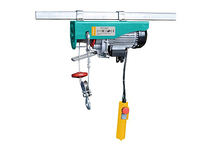 • Тельфер оснащен электромотором мощностью 1050 Вт и барабаном с намотанным на него высокопрочным стальным тросом – устройство обеспечивает подъем груза массой до 250 кг на высоту до 12 метров со скоростью 8 м / мин.