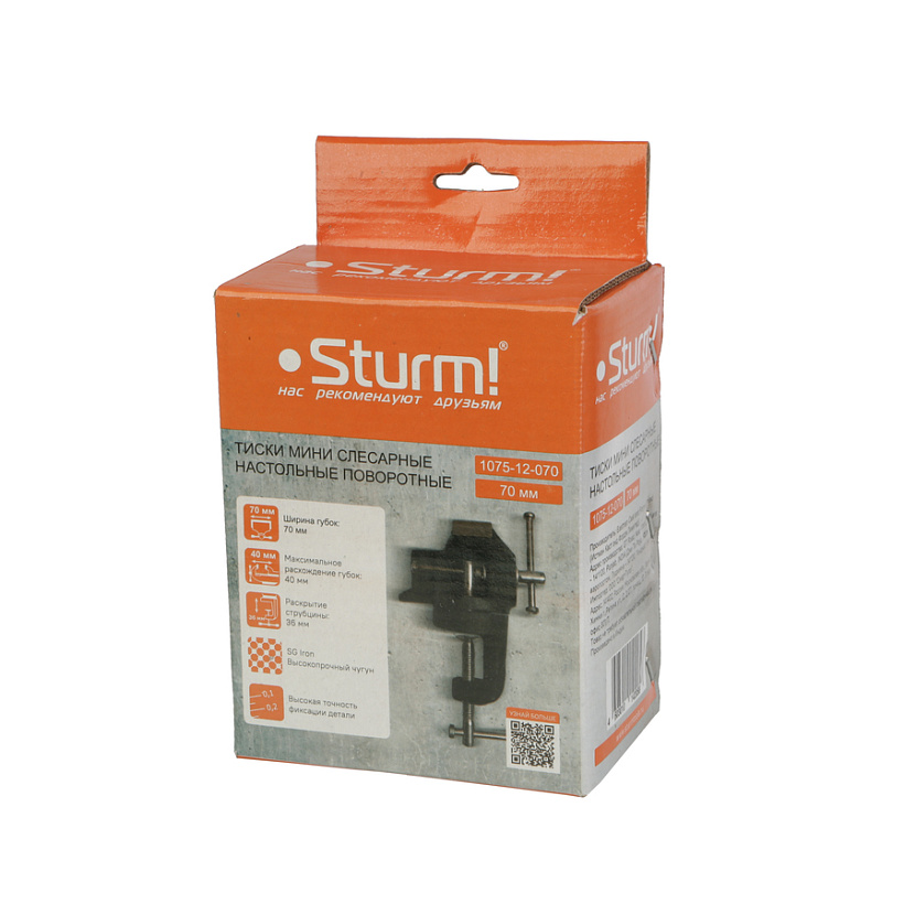Тиски мини 70мм, поворотные, на струбцине, Sturm!