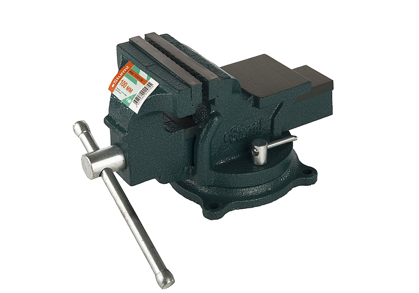 Поворотное основание позволяет бесступенчато изменять положение тисков относительно опоры, что обеспечивает удобство работы.