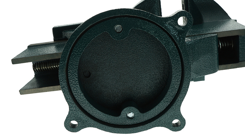 Поворотное основание позволяет бесступенчато изменять положение тисков относительно опоры, что обеспечивает удобство работы.