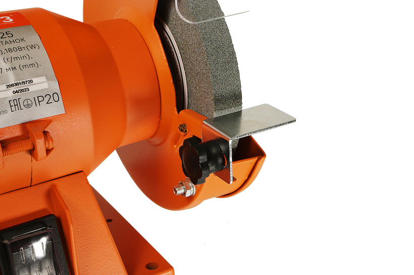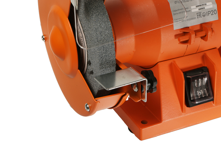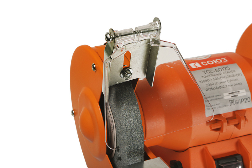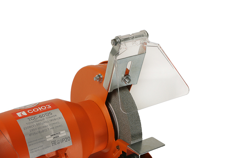 Прозрачный полимерный экран легко поворачивается на нужный угол, защищая оператора от вылета мелких частиц из-под вращающегося точильного круга, и помогая ему безопасно контролировать рабочий процесс.