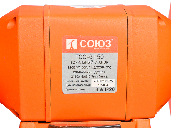 Точильный станок СОЮЗ TCC61150 с подсветкой предназначен для заточки, а также сухой шлифовки инструмента и металлических заготовок. Заточной станок подходит для эксплуатации в мастерской и на небольшом производстве.