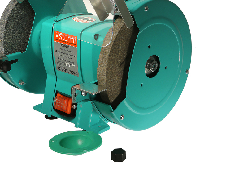 Технический люк на кожухе диска позволяет подсоединять различные вспомогательные устройства на вал двигателя, добавляя станку функциональность по выбору пользователя. ¶Например, BG60-1520U - насадка для заточки сверл (приобретается отдельно) Емкость для охлаждающих жидкостей в комплекте для правильной заточки лезвий и сверл Выключатель с силиконовым колпачком для защиты от пыли и влаги Адаптеры для дисков с посадочным диаметром 32мм в комплекте