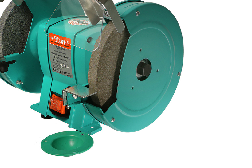 Защитные кожухи закрывающие точильные круги для большей безопасности выполнены из прочной стали, стойкой к поверхностному воздействию отлетающей при заточке стальной стружки и абразивной пыли.