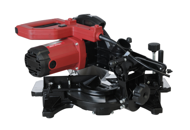 Инструмент оснащен пильным диском, винтовым зажимом для прочной фиксации заготовок и предотвращающие их опрокидывание выдвижными боковыми суппортами.
