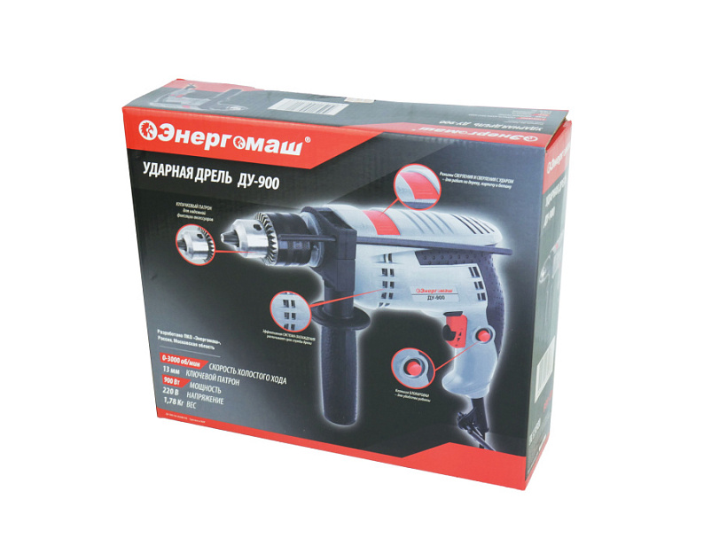 Дрель ударная Энергомаш ДУ-900. Превосходная комбинация компактного исполнения, малого веса и производительности для работ в условиях ограниченного пространства.