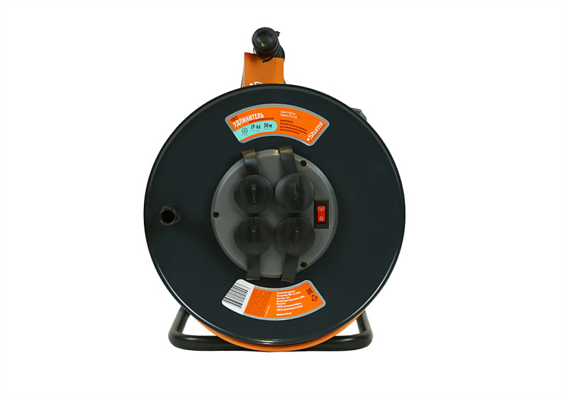 Шнур-удлинитель на катушке Sturm! с 4 гнездами предназначен для подключения электрических приборов и электроинструмента, когда недостаточно стандартной длины шнура для питания от стационарных розеток.