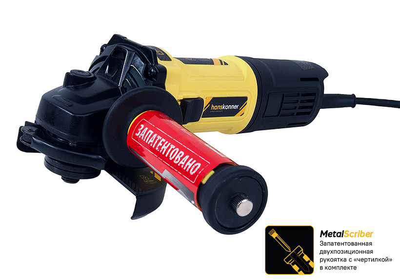 Болгарка (УШМ) Hanskonner HAG13125E. Компактная, легкая, мощная угловая шлифовальная машина для длительного применения и выполнения работ в стесненных условиях.