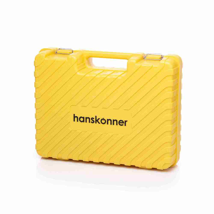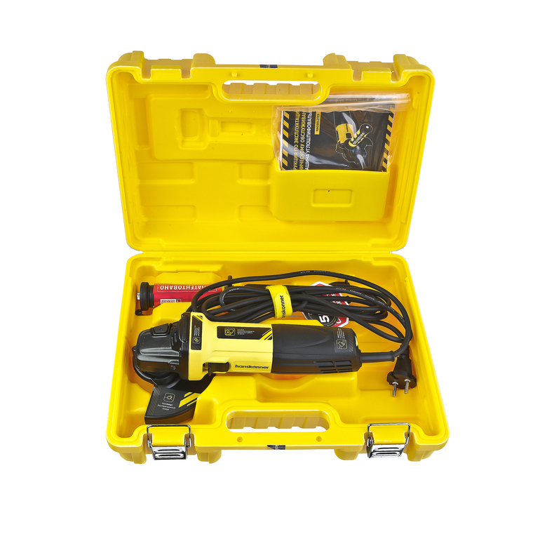 Hanskonner HAG9012TЕS – компактная универсальная болгарка (УШМ) под рабочий диаметр диска 125 мм. Обладает оптимальными массово-габаритными показателями и выверенными пропорциями: малый диаметр корпуса гарантирует максимальное удобство хвата, нейтральный центр тяжести позволяет уверенно контролировать инструмент в процессе работы даже одной рукой, низкопрофильный корпус редуктора клиновидной формы облегчает работу в местах с трудным доступом. Главная особенность модели – наличие блока константной электроники EPM (Electronic Power Manager), который обеспечивает поддержание стабильной частоты вращения на валу шпинделя, препятствуя падению оборотов под нагрузкой. Применение данной опции позволяет повысить производительность работы в среднем на 20%. К числу достоинств Hanskonner HAG9012TЕS стоит отнести и систему плавного пуска – она снижает пусковые нагрузки на двигатель и предотвращает рывок инструмента в момент включения, а также электронную регулировку оборотов (4000 – 10000 об / мин), благодаря которой достигается оптимальный подбор частоты вращения в зависимости от типа используемой оснастки и обрабатываемого материала .Инструмент оснащен мощным 1100 Вт электромотором со специальным термостойким покрытием и дополнительной защитой от пыли и абразивных частиц, усиленным редуктором с шестернями, подверженными закалке, а также, фирменными пылезащищенными подшипниками C&U – все это обеспечивает достаточный запас по надежности. Сетевой кабель имеет резиновую изоляцию, что позволяет сохранить его гибкость и эластичность в условиях низких температур, а четырехметровая длина кабеля обеспечивает рабочую зону площадью до 50 квадратных метров, исключая необходимость задействовать дополнительный сетевой удлинитель. Модель проста в эксплуатации и обслуживании. Снабжена быстросъемным защитным кожухом, надежно фиксирующимся при помощи специального зажимного рычага, за счет чего возможна быстрая смена положения кожуха без помощи вспомогательного инструмента, а также удобной патентованной рукоятью со специальным твердосплавным карандашом для нанесения разметки на поверхности любой сложности, включая ржавые, влажные и маслянистые. Комплектуется штатным пластмассовым кейсом для удобства хранения и транспортировки.