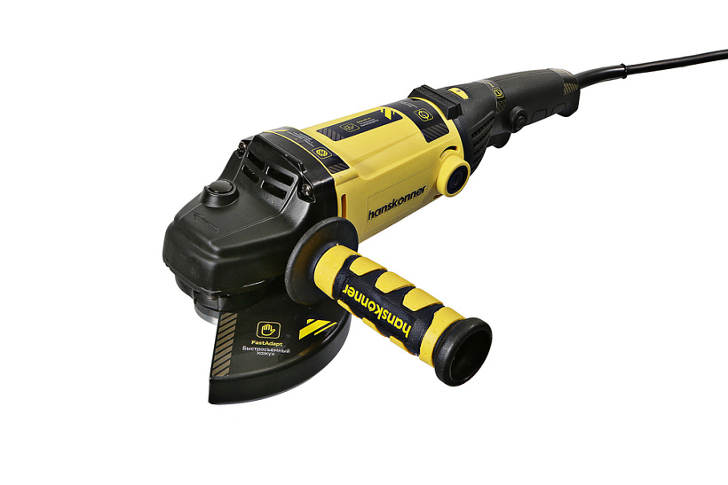 Hanskonner HAG15150EC – мощная универсальная болгарка (УШМ) под рабочий диаметр диска 150 мм. Имеет компоновку с длинной рукоятью, производительный 1500 Вт электромотор StoneCut и мощную механическую часть – способна выполнять любые задачи по резке, зачистке, шлифованию поверхностей из металла, керамической плитки, кирпича и камня. Выверенные массово-габаритные показатели, а также нейтральный центр тяжести гарантируют лучший контроль инструмента, а клиновидный корпус редуктора NarrowBody значительно облегчает рабочий процесс в условиях с трудным доступом. Главная особенность модели, выделяющая ее среди аналогов – наличие блока константной электроники EPM (Electronic Power Manager), задача которого поддерживать оптимальную частоту вращения на валу шпинделя, препятствуя падению оборотов под нагрузкой. Применение данной опции в среднем повышает производительность работы на 15%. Кроме того, блок EPM обеспечивает плавный запуск инструмента, исключая стартовый рывок, а также позволяет в широком диапазоне (2400 – 8400 об/ мин) производить регулировку оборотов вала шпинделя в зависимости от типа используемой оснастки и обрабатываемого материала. Модель имеет повышенные надежность и ресурс, как за счет применения качественных комплектующих (фирменные подшипники C&U), так и за счет продуманной, с запасом прочности, конструкции: электромотор покрыт несколькими изоляционными слоями термостойкого лака и бронирован от пыли и абразивных частиц, благодаря закалке, повышенной износостойкостью обладают конические шестерни редуктора, корпус инструмента изготовлен с использованием нейлона, что способствует его долговечности. Также, инструмент получил функцию автоматического отключения щеток AutoStopBrush, защищающую коллектор от повреждений при критическом уровне щеточного износа. Модель проста в эксплуатации и обслуживании. Снабжена быстросъемным защитным кожухом FastAdapt, надежно фиксирующимся при помощи специального зажимного рычага, а также удобной обрезиненной патентованной рукоятью. Предусмотрена функция быстрого доступа к щеткам QuickChange, обеспечивающая возможность их быстрой замены, без демонтажа элементов корпуса. Благодаря применению сетевого кабеля VelcroRubber4 с резиновой изоляцией, удалось в полной мере сохранить его гибкость и эластичность в условиях низких температур. Четырехметровая длина кабеля способна обеспечить рабочую зону площадью до 50 квадратных метров без необходимости применения дополнительного сетевого удлинителя.