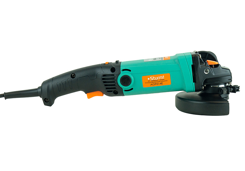 Sturm AG9514Е – универсальная болгарка (УШМ) бытового назначения под рабочий диаметр диска 125 мм. Имеет компоновку с длинной рукоятью и рассчитана под хват двумя руками. Основное преимущество данной компоновки – лучший контроль и удобство использования инструмента при зачистных и шлифовочных операциях. Работу в местах с трудным доступом призван облегчить низкопрофильный корпус редуктора клиновидной формы. Особенность модели – функция электронной регулировки оборотов (4000 – 11000 об / мин), благодаря которой достигается оптимальный подбор частоты вращения в зависимости от типа используемой оснастки и обрабатываемого материала. Для обеспечения высокого ресурса инструмента особое внимание уделено наиболее нагруженным элементам конструкции: электромотор покрыт несколькими изоляционными слоями термостойкого лака и имеет дополнительную защиту от пыли и абразивных частиц, благодаря закалке, повышенной прочностью обладают шестерни редуктора. Кроме того, применение шестерен с конической формой зуба позволило снизить уровень шума при работе. Инструмент прост в обслуживании и эксплуатации. Предусмотрена функция быстрого доступа к щеткам, позволяющая их замену без разбора элементов корпуса. Для удобства пользователя модель снабжена быстросъемным защитным кожухом, который надежно фиксируется при помощи специального зажимного рычага – это дает возможность при необходимости быстро изменять положение кожуха, не прибегая к помощи вспомогательного инструмента, а также удобной патентованной рукоятью со специальным твердосплавным карандашом для нанесения разметки на поверхности любой сложности, включая ржавые, влажные и маслянистые.