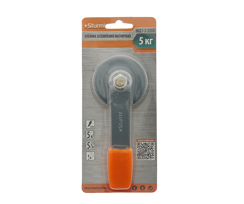 Клемма заземления магнитная, 500А, d 86mm Sturm!
