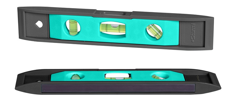 Благодаря тому, что корпус изготовлен из ударопрочной пластмассы, уровень имеет малый вес