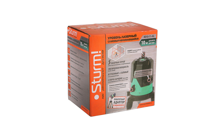 Лазерный уровень Sturm! 4010-11-AL. Увеличенная мощность красного лазерного диода поддерживает яркость луча при дневном свете.