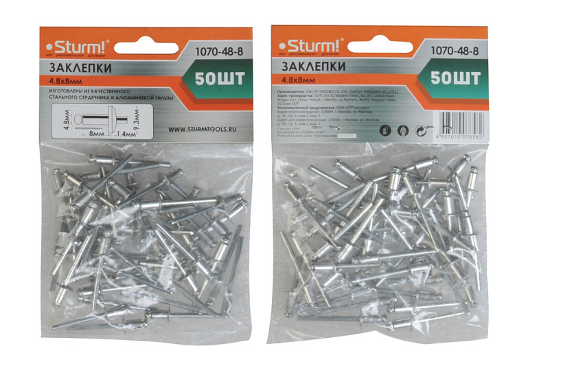 Заклепки 4,8 х 8 мм, 50 шт. Sturm!