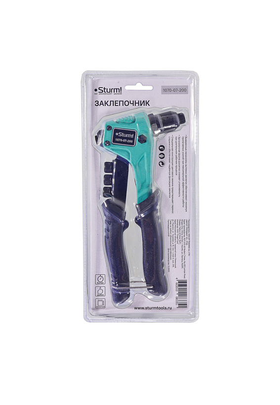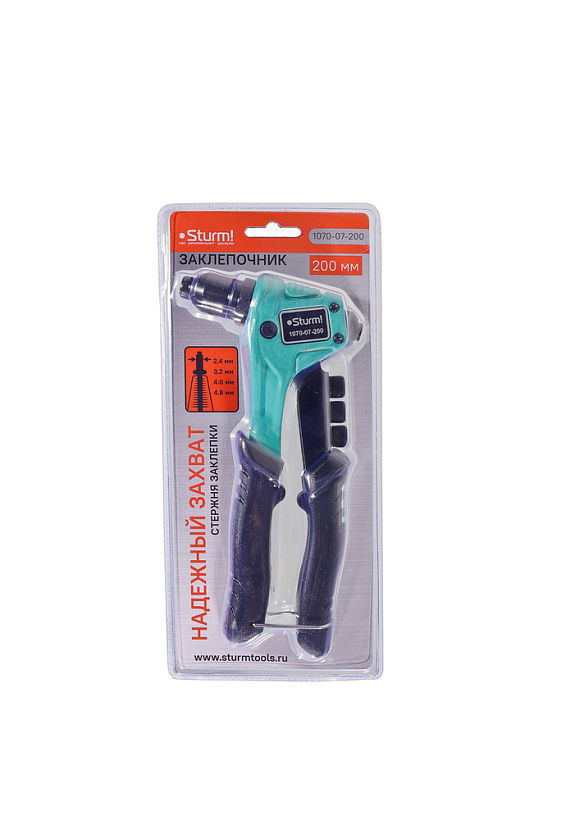 Заклепочник усиленный Sturm! 1070-07-200 является универсальным инструментом для соединения деталей из листового металла, ткани, кожи и пластика.